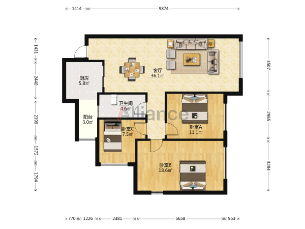 万达广场附近震后电梯3居室精装,96平米,河边高档小区 ...